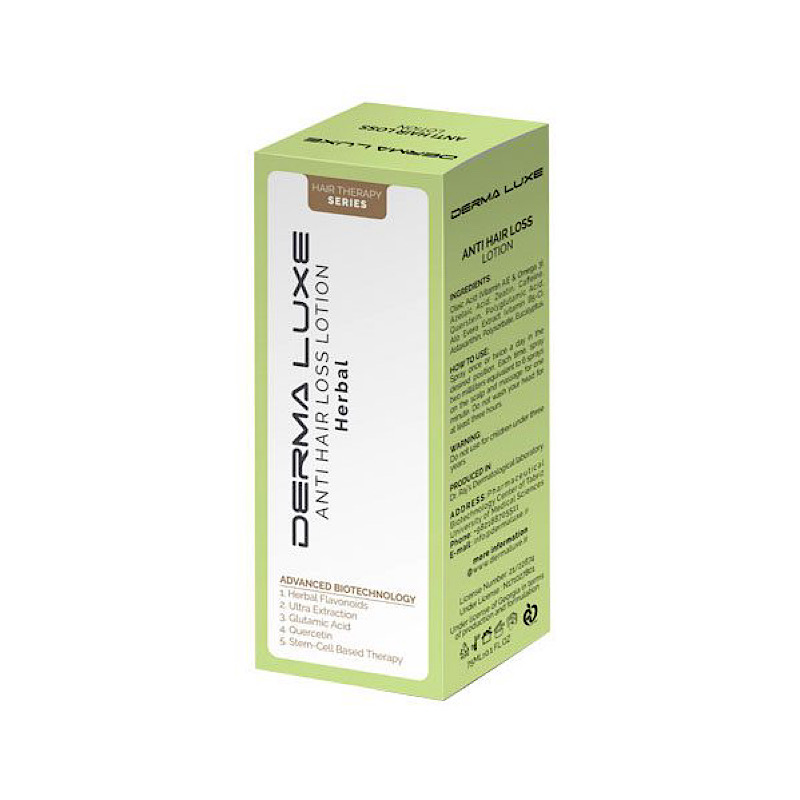 لوسیون گیاهی تقویت مو درمالوکس 75 میل یک لوسیون تخصصی تقویت مو است که با فرمولاسیون گیاهی و فناوری پیشرفته سلولهای بنیادی طراحی شده تا ریشه مو را تقویت کرده و از ریزش آن جلوگیری کند. این محصول با تکنولوژی استخراج مواد طبیعی و بدون ایجاد چربی یا حساسیت، مناسب برای انواع موهاست. حجم این محصول 75 میلیلیتر بوده و تحت لیسانس آلمان تولید شده است.