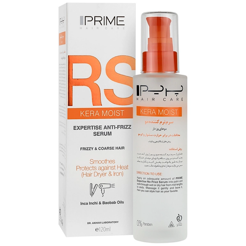 سرم نرم کننده مو پرایم مدل RS یک سرم تخصصی ۱۲۰ میلیلیتری طراحی شده برای موهای وز دار است که بافتی سبک و غیرچرب دارد و بهسرعت جذب ساقه مو میشود. این سرم با هدف کنترل الکتریسیته ساکن و جلوگیری از وز شدن موها در محیطهای مرطوب فرموله شده است، بهطوری که حتی در روزهای مرطوب نیز موها را نرم، خوشحالت و درخشان نگه میدارد.