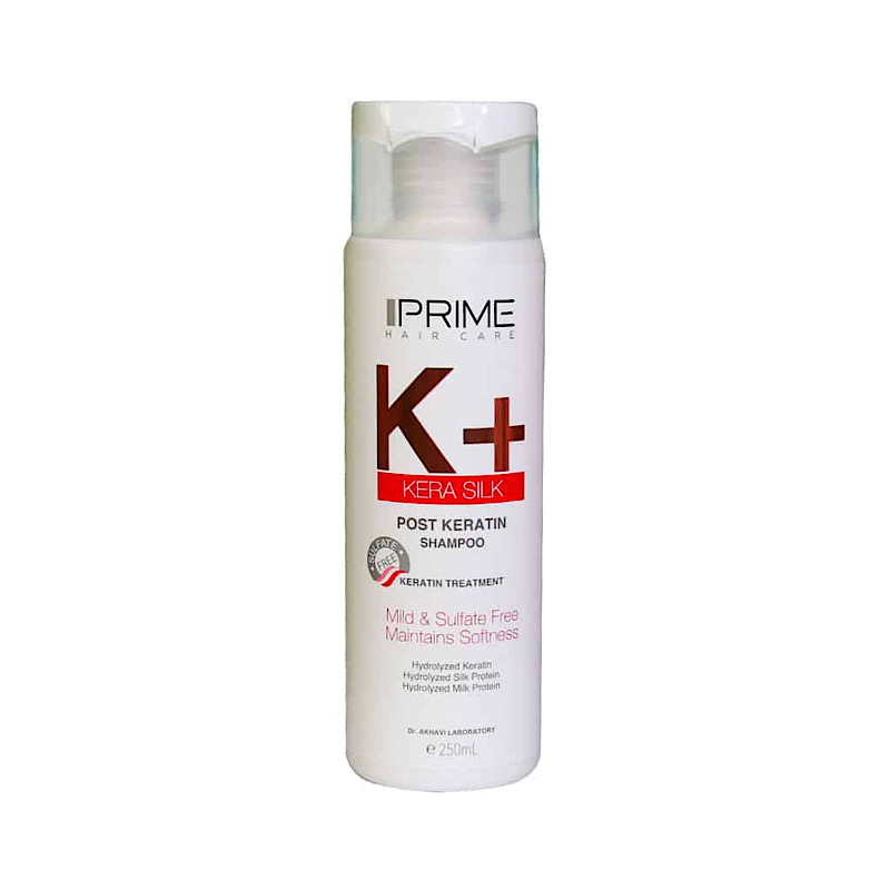 شامپو فاقد سولفات موهای کراتینه شده پرایم مدل +K حجم 250 میل یک شوینده ملایم و تخصصی است که برای مراقبت از موهای کراتینه طراحی شده است. این شامپو با فرمولاسیونی فاقد سولفات، به پاکسازی آلودگی و چربیهای پوست سر بدون آسیب به کراتین مو کمک میکند. مناسب دوستداران موهای صاف، براق و نرم پس از انجام درمان کراتینه است.